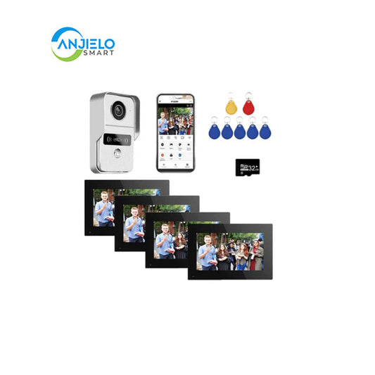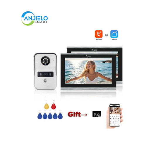 Anjielo Smart Home Tuya Smart IP 2-wired Doorbell Video Intercom System with 1080P HD Camera 7-inch Touch Screen and Dual Unlocking Function Via Password and IC Card for Secure and User-Friendly Home Access
