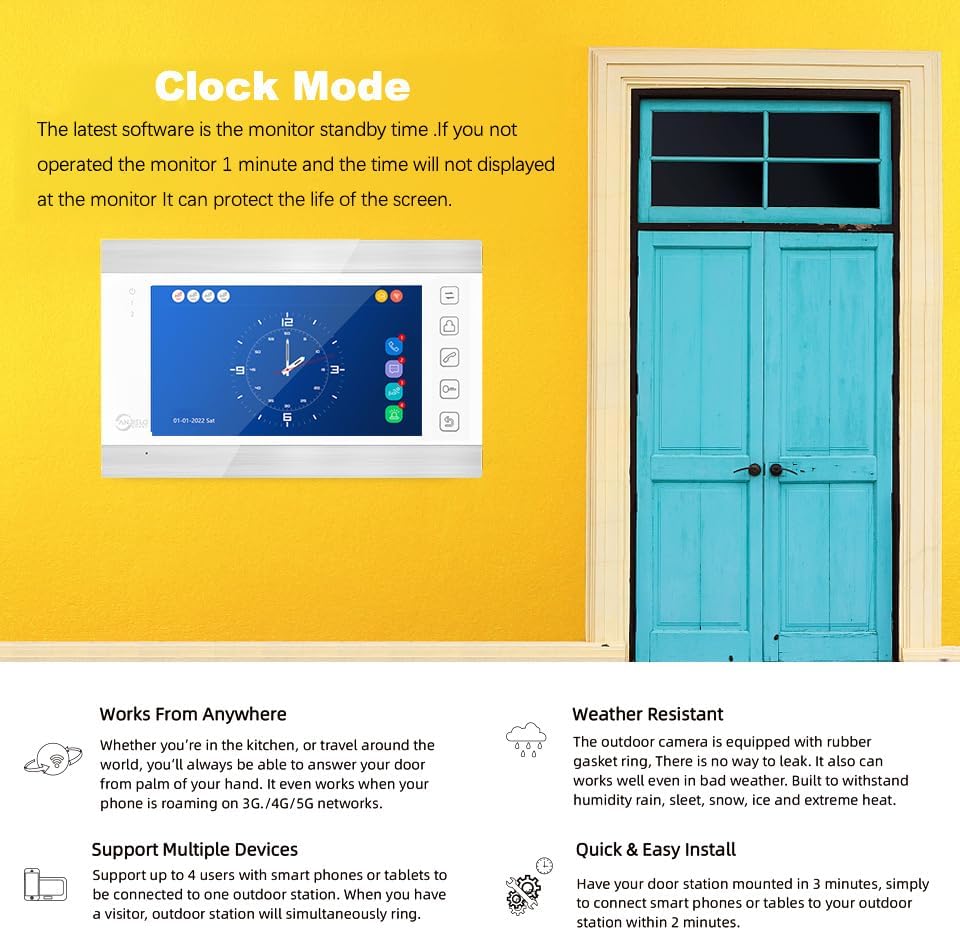 Anjielo Smart Home WiFi Video Intercom System with 1080P 160°Wide HD Camera 7 lnch Wired Screen Monitor with Night Vision Motion Detect for Vally Apartment Tuya