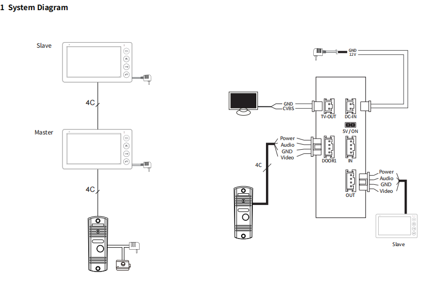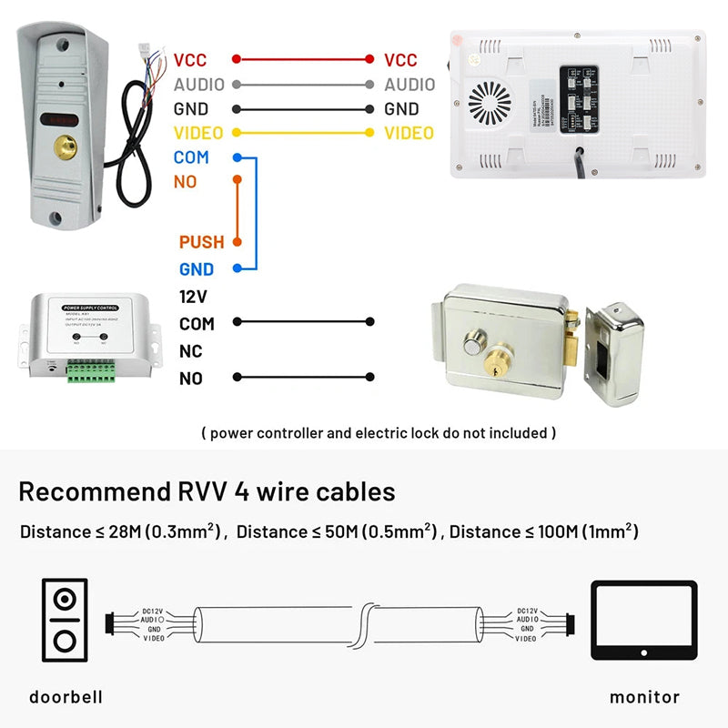 5. 1 monitor supports 1 outdoor doorbell only , monitor connect to doorbell by cables