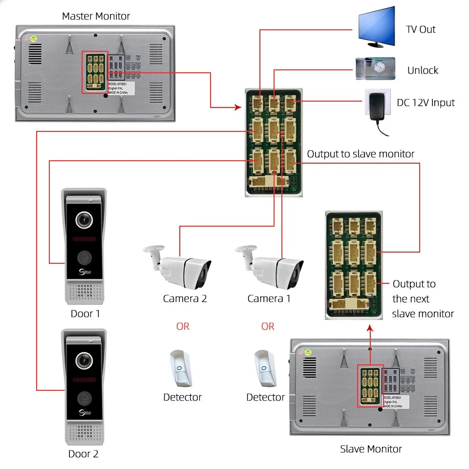 Our 7" Video Door Phone Set Supports Connecting With PIR Detector, Analog Camera, And Electronic Lock. It Can Protect Your Home And Property In All Aspects.