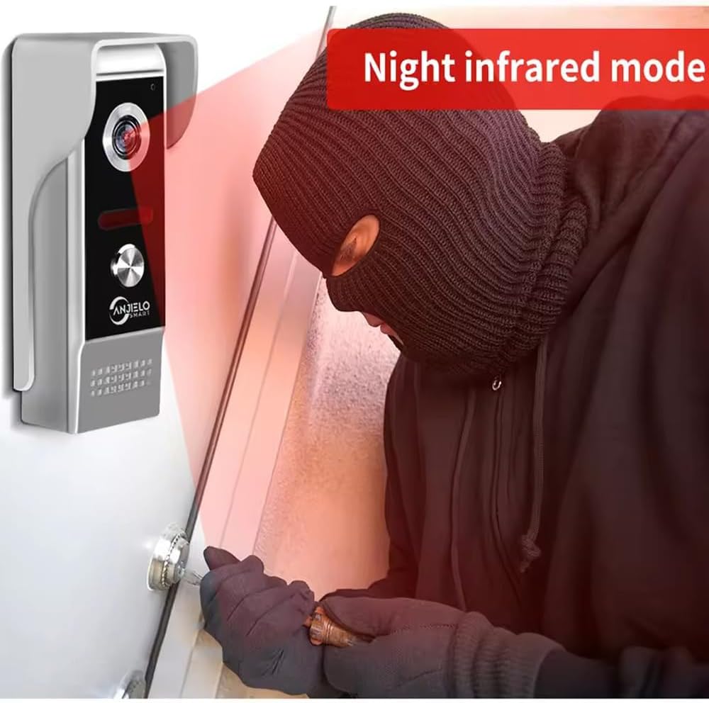 ANJIELO SMART HOME Wired Video Intercom System,7 Inch Monitor,HD Camera Kits,IR Outdoor Camera Support Monitoring,Unlock, 2 Way Intercom,Mute